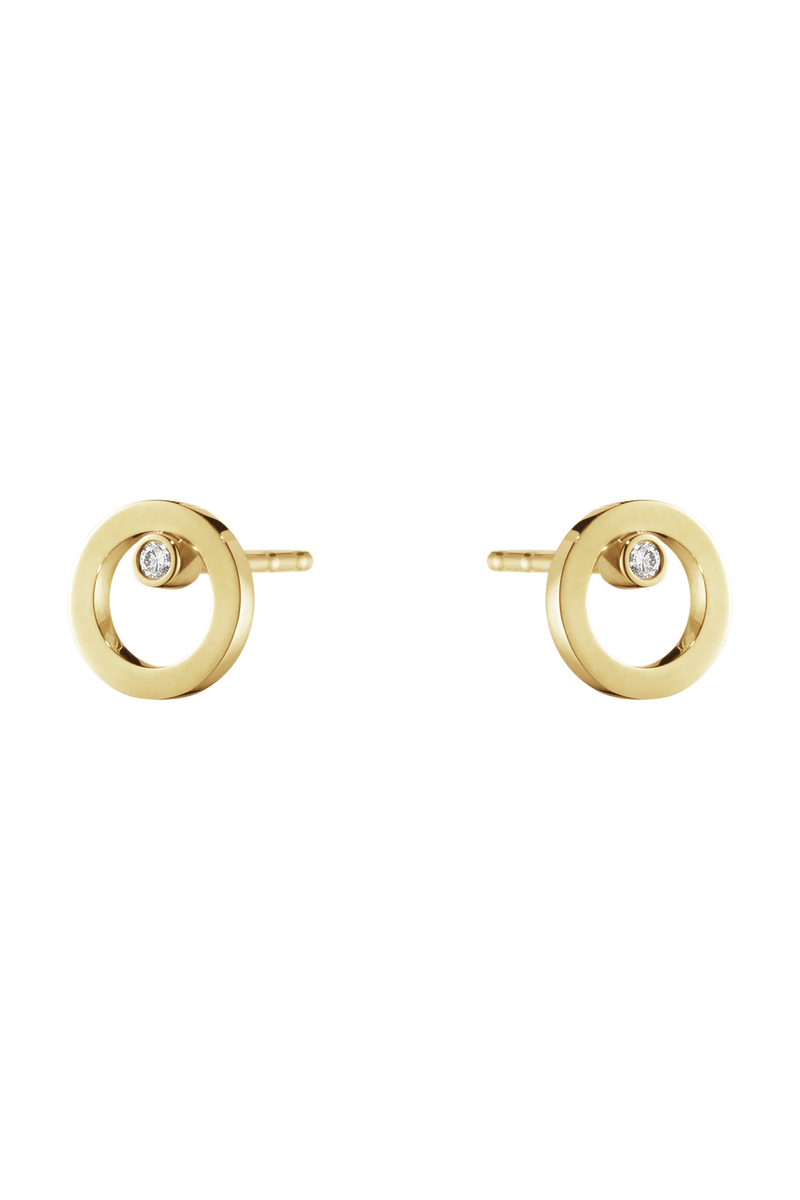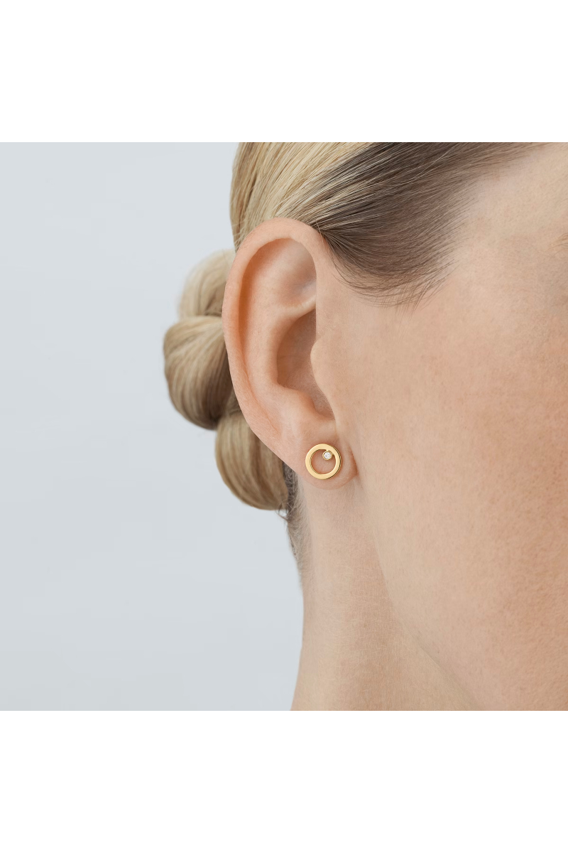 En gullring hviler behagelig på en glitrende diamant som diskret trekker oppmerksomheten mot ørene dine. Uttrykket er subtilt, men med et tydelig element av raffinement.