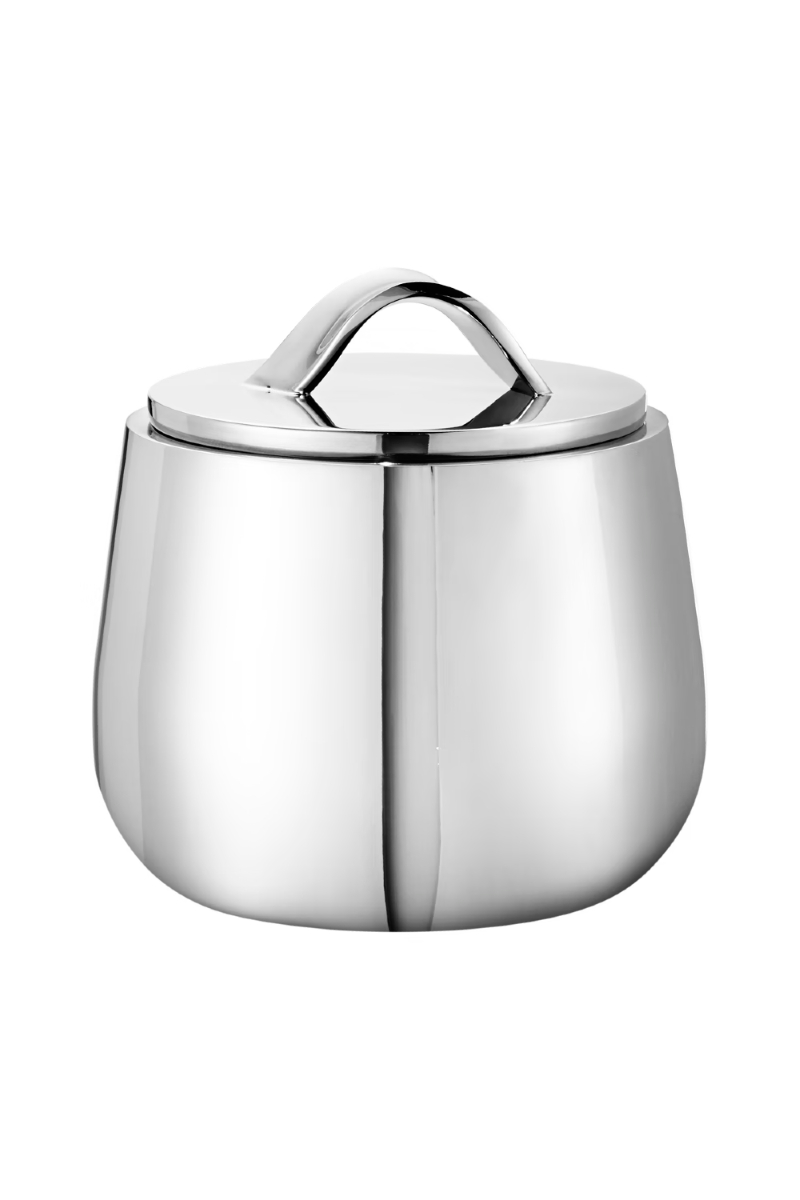 Skålen er utstyrt med et ergonomisk utformet lokk og er mesterlig laget i rustfritt stål med en speilpolert overflate.