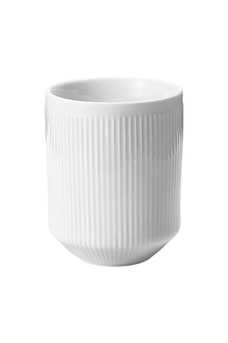Disse hvite porselenskrusene er et nydelig eksempel på skandinavisk design, og forener form og funksjon med en subtil og moderne estetikk. De delikate rillene trekker referanser til tidlig art deco-stil og tilfører en minimalistisk dekor, samtidig som de gir et solid grep om kruset. I tillegg holder det doble laget på innsiden innholdet varmt uten at du brenner hendene.