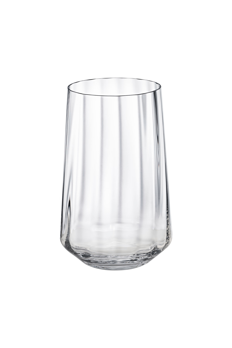All drikke smaker bedre når de serveres i et godt glass! Dette settet med seks høye blyfrie krystallglass tilfører sofistikert eleganse til alt fra en enkel vannservering til en fristende gin og tonic. De delikate rillene er både visuelt tiltalende og henspeiler på art deco-detaljer, samtidig som de gir en praktisk funksjon med et godt grep.