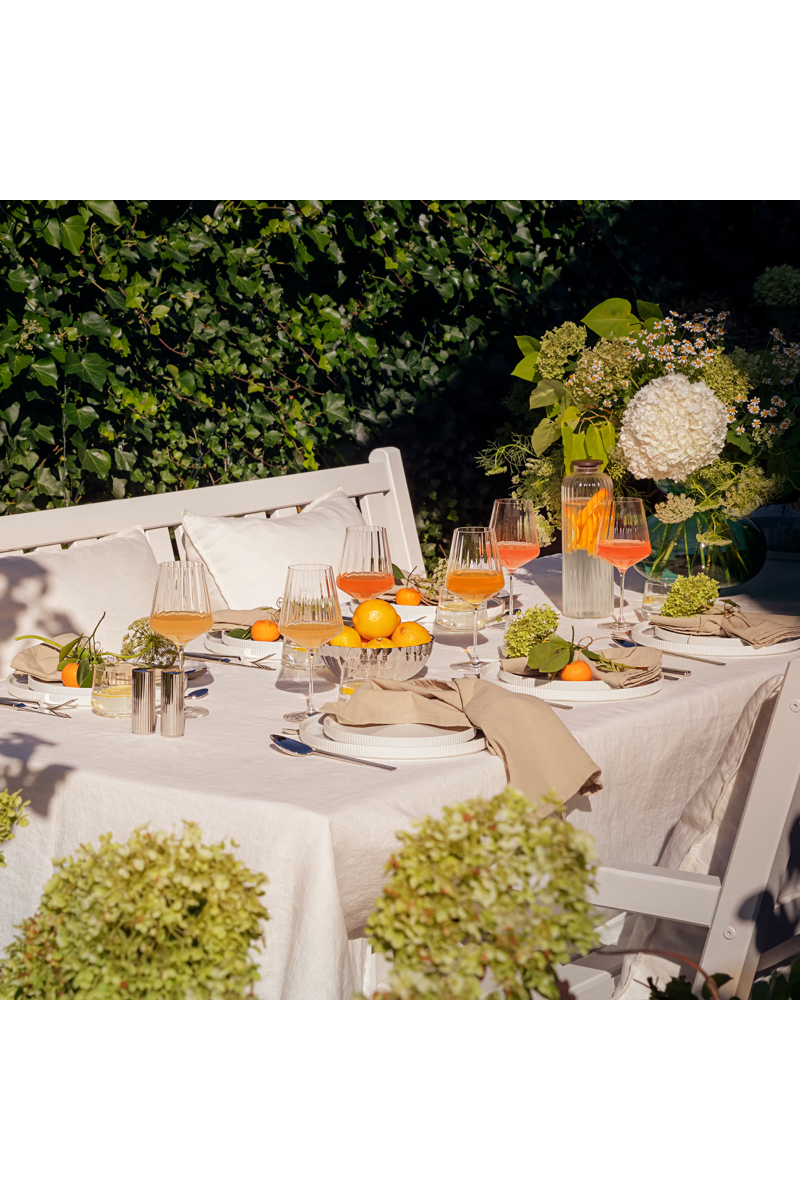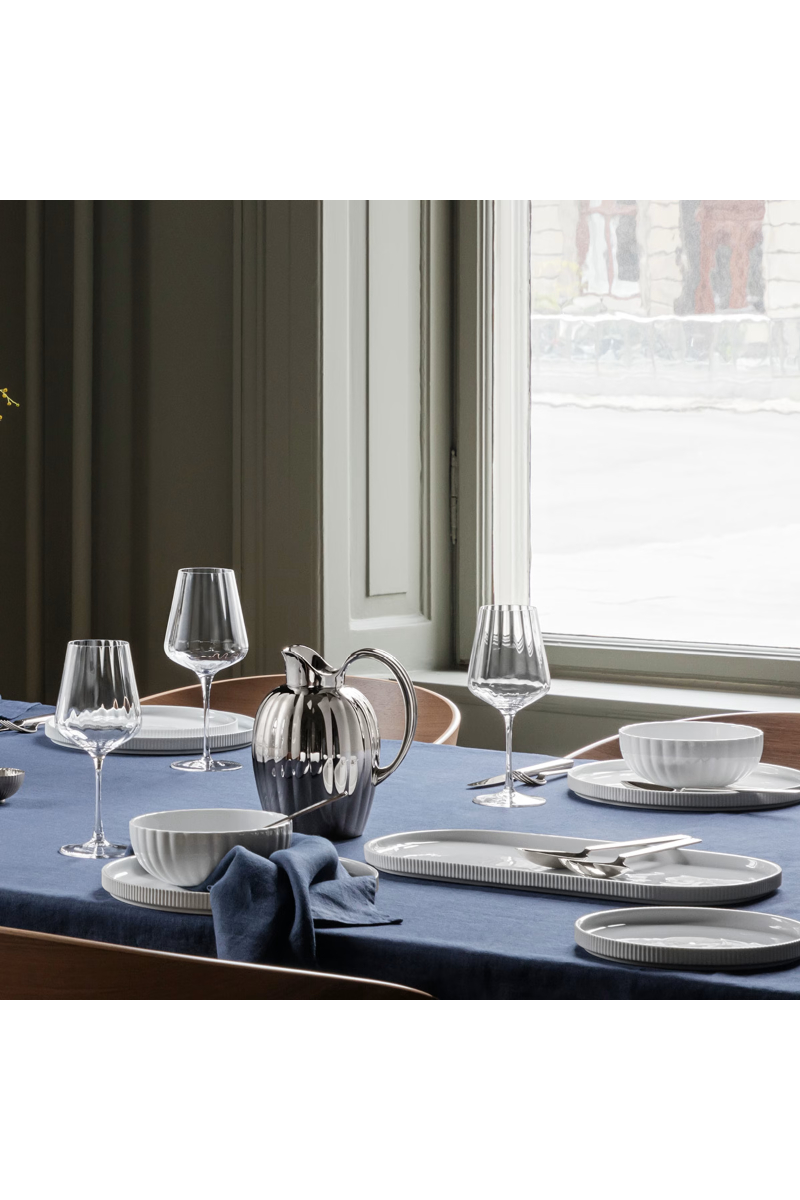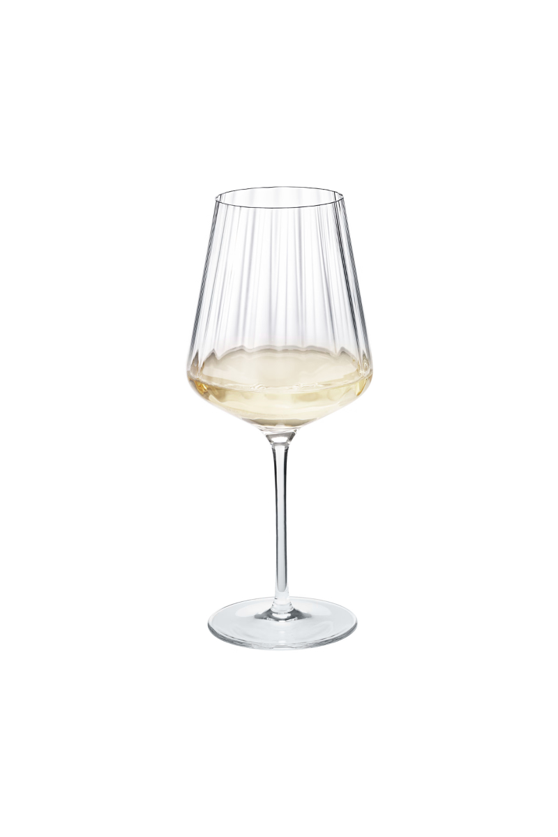 God vin fortjener et vakkert glass, og disse moderne hvitvinsglassene i blyfri krystall er det perfekte valget. De iøynefallende, myke rillene gjenspeiler ikke bare art deco-detaljer, men gjør det også mulig å holde glassene godt fast, selv når den avkjølte hvitvinen skaper kondens på utsiden. Kombinasjonen av form og funksjon er et kjennetegn for godt skandinavisk design!