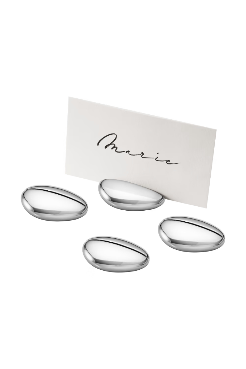 Små detaljer har en stor innvirkning på middagsselskapet, og disse vakre, skulpturelle bordkortholderne skaper interesse og samtale før maten blir servert. Settet med fire forkrommede holdere ligner organiske små steiner og leveres med 24 kort, noe som gjør det til den perfekte gaven.