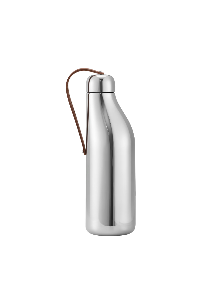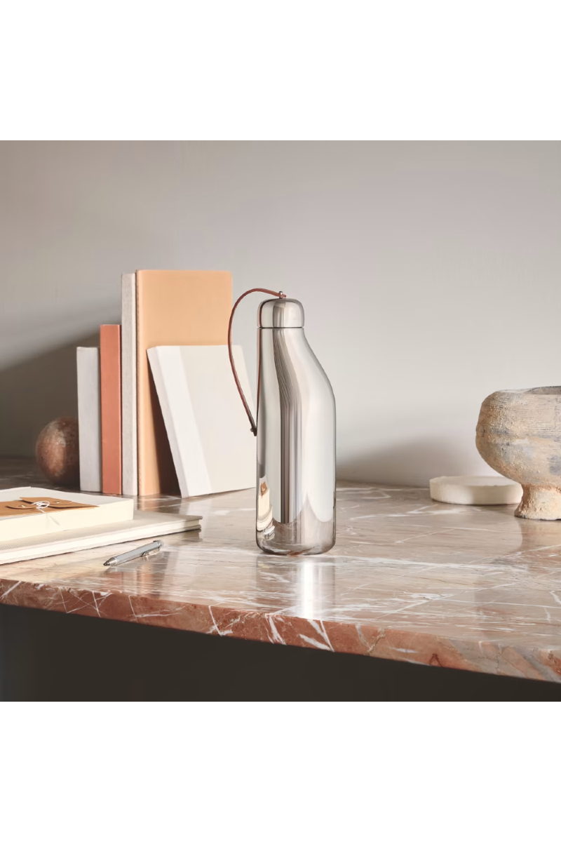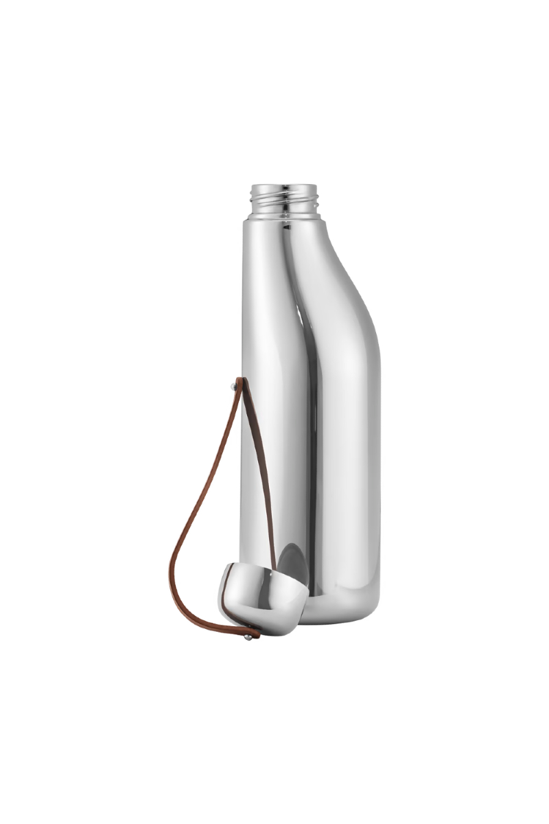 Aurélien Barbry har med sin minimalistiske estetikk designet et objekt som kombinerer funksjonalitet og skjønnhet. Den organiske formen i rustfritt stål gir en behagelig følelse når den holdes, og har en naturlig reim i kalveskinn for å sikre lokket. Flaskens stål bidrar til å opprettholde en lavere temperatur for innholdet. Vennligst merk at flasken ikke er egnet for varme drikker, da den raskt kan varmes opp.