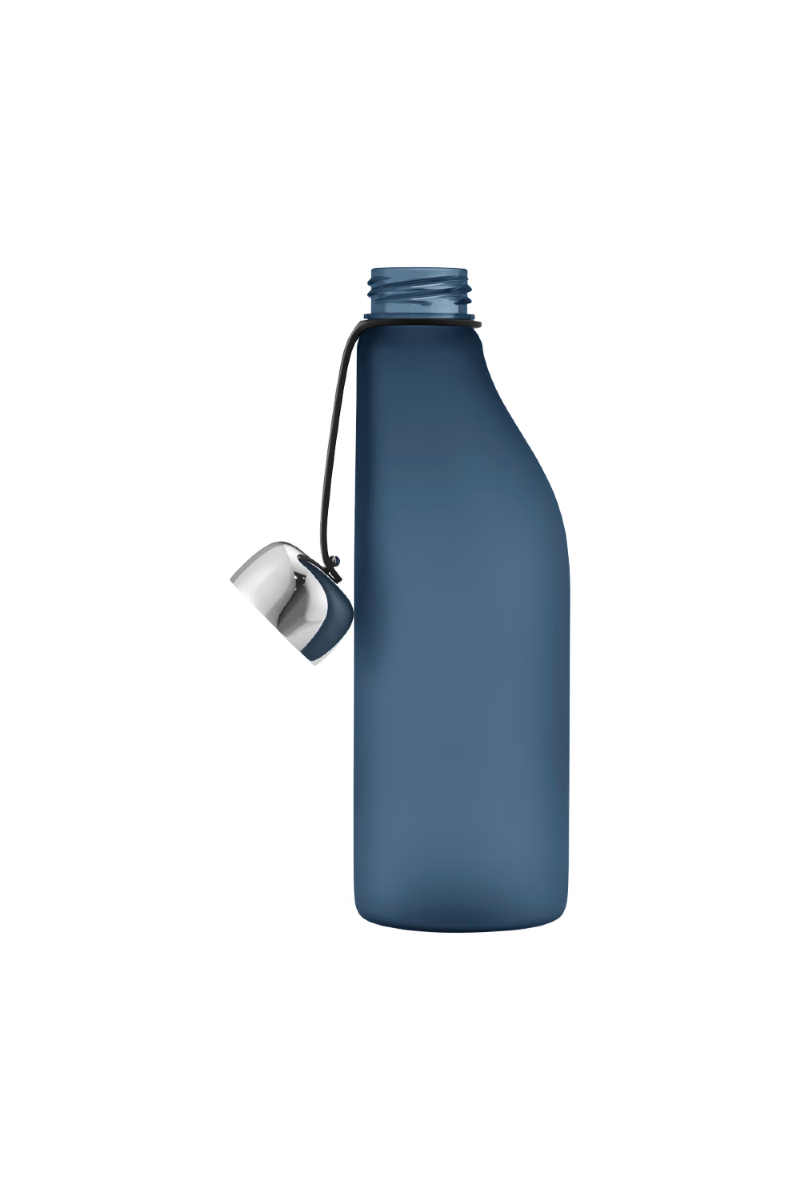 Aurélien Barbrys distinkte og elegante tilnærming til en vannflaske manifesteres gjennom en organisk, asymmetrisk form i blå Tritan BPA-fri plast. Denne plasttypen er ikke bare holdbar, men gir også enkel håndtering. Lokket, laget av rustfritt stål, sitter sikkert på flasken og er festet med en stropp som også fungerer som en praktisk bæreløkke.