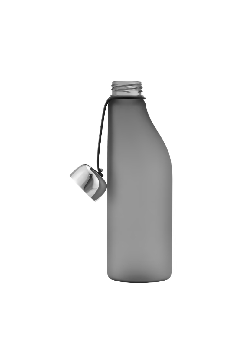 Aurélien Barbrys distinkte og elegante tilnærming til en vannflaske manifesteres gjennom en organisk, asymmetrisk form i grå Tritan BPA-fri plast. Denne plasttypen er ikke bare holdbar, men gir også enkel håndtering. Lokket, laget av rustfritt stål, sitter sikkert på flasken og er festet med en stropp som også fungerer som en praktisk bæreløkke.