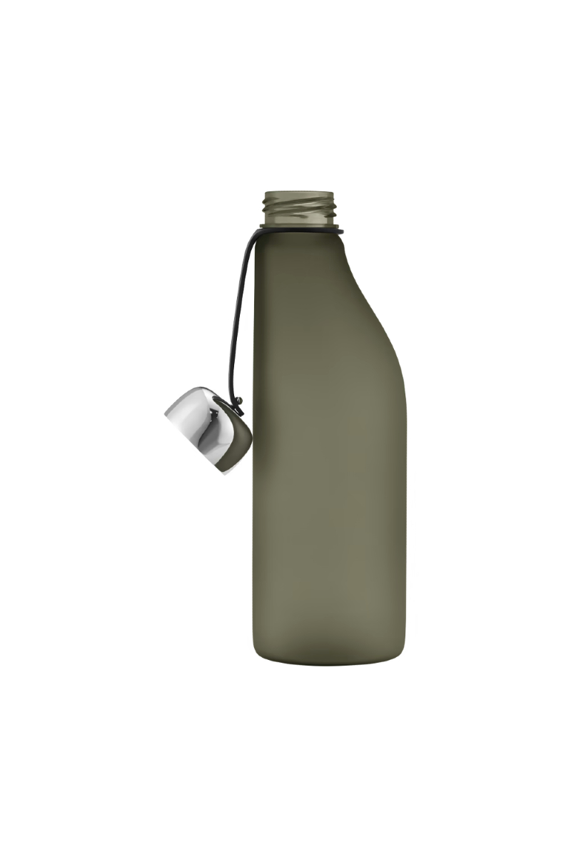 Aurélien Barbrys distinkte og elegante tilnærming til en vannflaske manifesteres gjennom en organisk, asymmetrisk form i mørkegrønn Tritan BPA-fri plast. Denne plasttypen er ikke bare holdbar, men gir også enkel håndtering. Lokket, laget av rustfritt stål, sitter sikkert på flasken og er festet med en stropp som også fungerer som en praktisk bæreløkke.