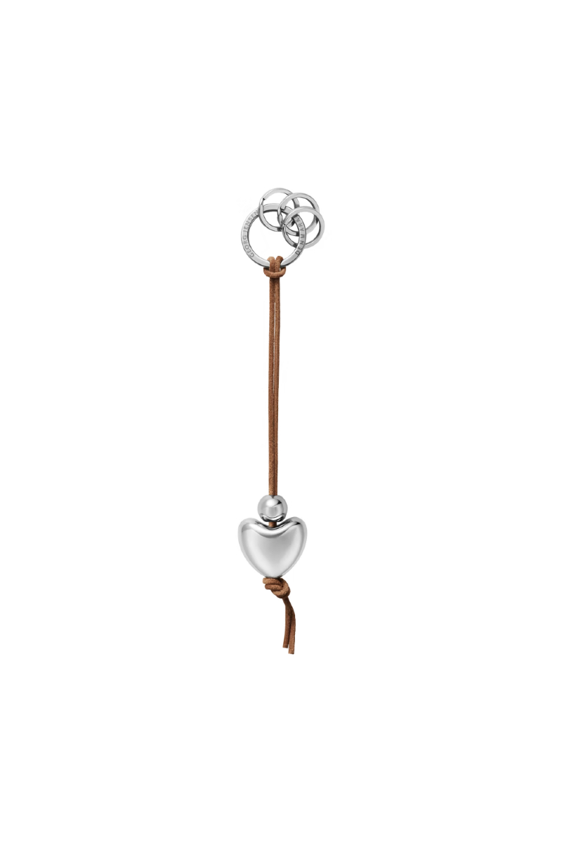 Et forkrommet hjerte og en liten, rund kule er begge montert på en rem i naturlig kalveskinn, og danner en herlig og taktil nøkkelring som også fungerer som charm på en håndveske. Dette evige symbolet på kjærlighet er designet av Regitze Overgaard, og er en perfekt gave som minner mottakerne om deg hver gang de bruker nøkkelringen.