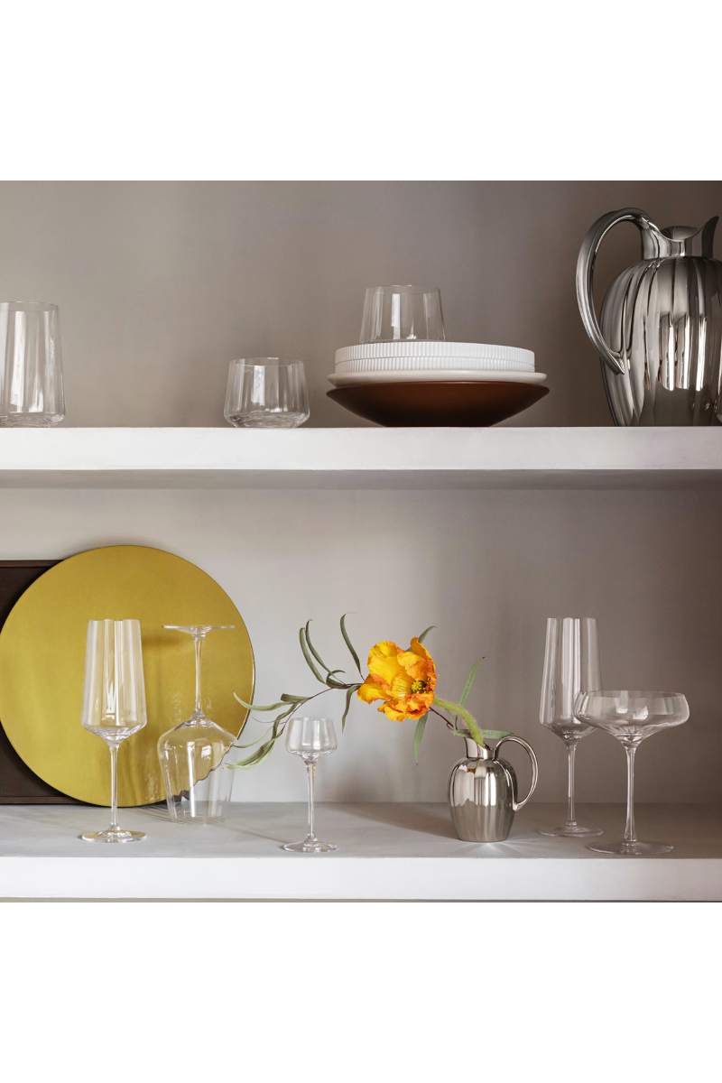 De rillede og geometriske linjene som kjennetegner Sigvard Bernadottes designspråk, er også en vakker detalj på disse elegante cocktailglassene. Glassene er laget av krystallglass og er perfekte til servering av alt fra cocktails til champagne og prosecco – en elegant design til alle festlige anledninger. Med sitt sofistikerte preg vil disse cocktailglassene definitivt heve stemningen på ethvert selskap eller arrangement.