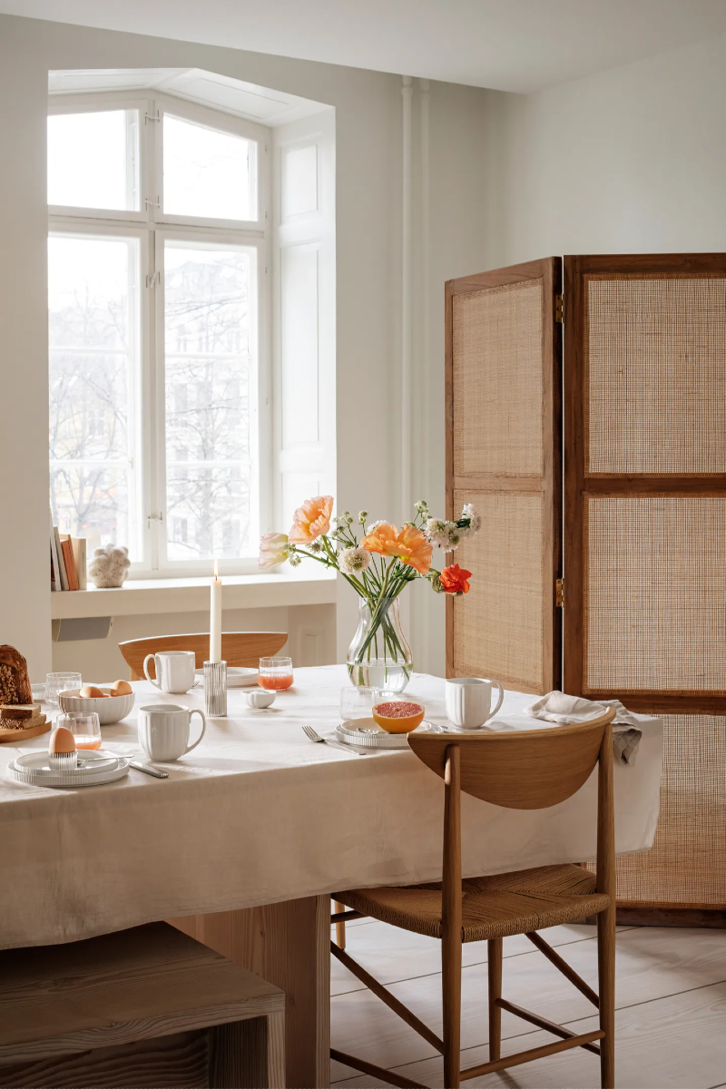 Disse krusene er et uttrykk for tidløs eleganse og funksjonalitet, håndlaget i det reneste hvite porselen. Inspirert av den legendariske Bernadotte-kolleksjonen og den ikoniske designarven til den svenske prinsen Sigvard Bernadotte, er dette kruset et mesterverk av enkelhet og skjønnhet.