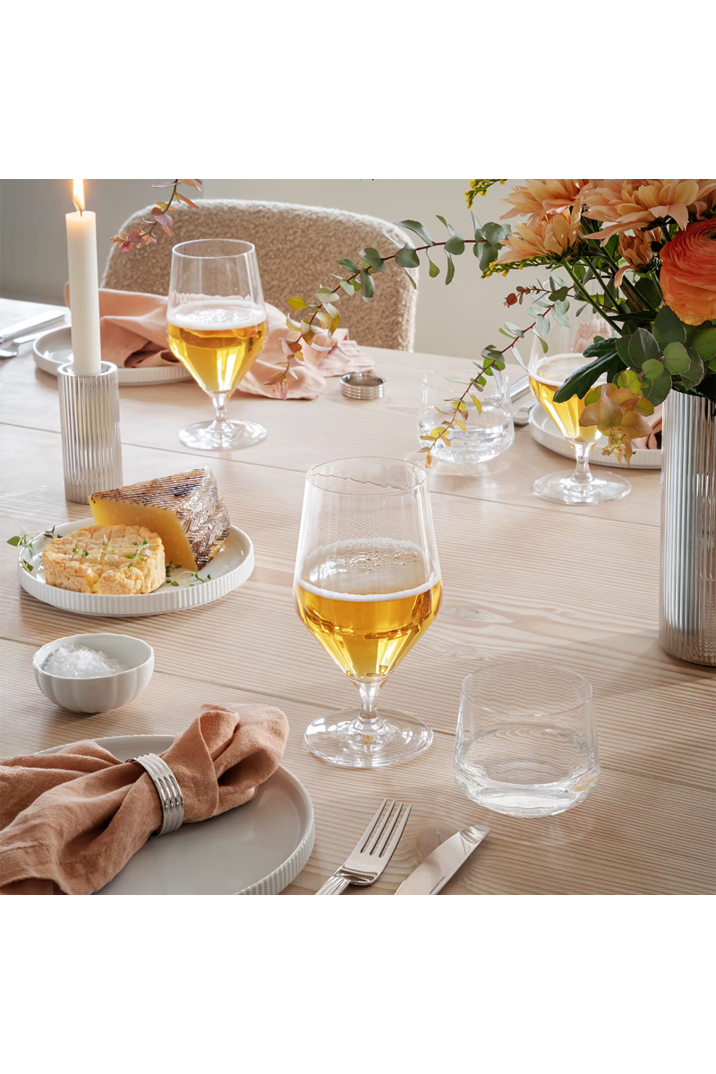 Fullfør din Bernadotte-samling med disse nye, vakre ølglassene på fot fra Georg Jensen, som gir opplevelsen en ny dimensjon. De elegante og tynne ølglassene på fot er prydet med den ikoniske rillede designen, inspirert av Sigvard Bernadotte. Dette settet består av seks ølglass. Glassene kan settes i fryseren og tåler oppvaskmaskin. Perfekte for å nyte din favorittøl med stil og eleganse! Skål!