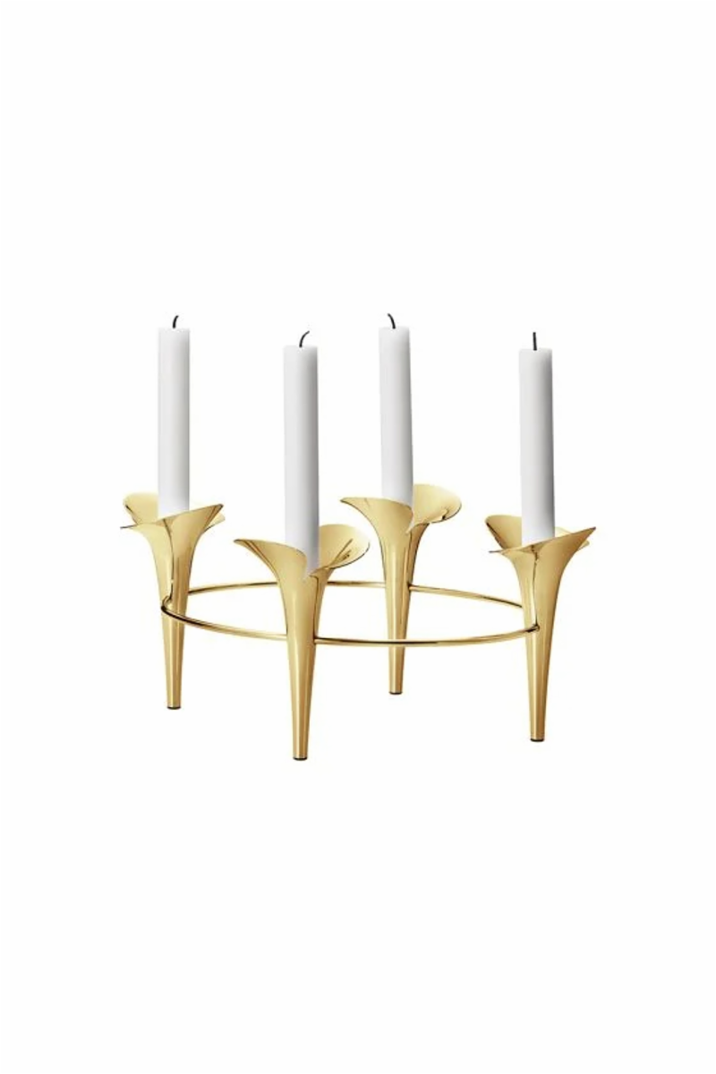 Helle Damkjær hentet inspirasjon fra de blomstrende kirsebærtrærne i Japan da hun designet den populære Bloom-kolleksjonen. Denne elegante lysestaken i gullbelagt rustfritt stål har de karakteristiske designelementene fra Bloom-kolleksjonen, som bringer naturens skjønnhet inn i hjemmet.