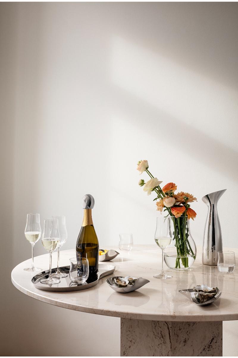 Indulgence-fatet er skapt for de som setter pris på livets gleder. Designeren Helle Damkjær har utformet dette fatet for Georg Jensen, laget av rustfritt stål, og det forener eleganse med et moderne preg. Fatet bør ikke vaskes i oppvaskmaskin.