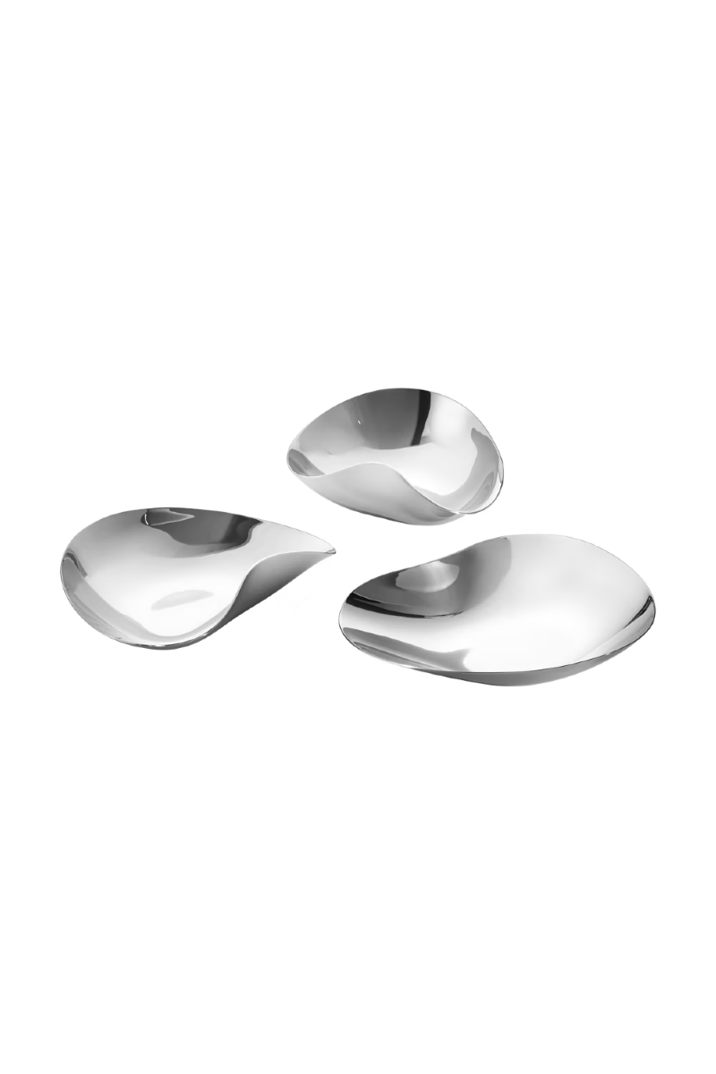 Disse snackskålene i rustfritt stål, designet av Helle Damkjær, er perfekte for ekstra smakfulle snacks. Bruk dem til oliven, nøtter, potetgull og annet. Den naturlige designen gjør det enkelt å plassere skålene etter ønske, enten spredt over hele bordet eller i små grupper. Dette settet består av tre boller. Stålskålene kan ikke vaskes i oppvaskmaskin.