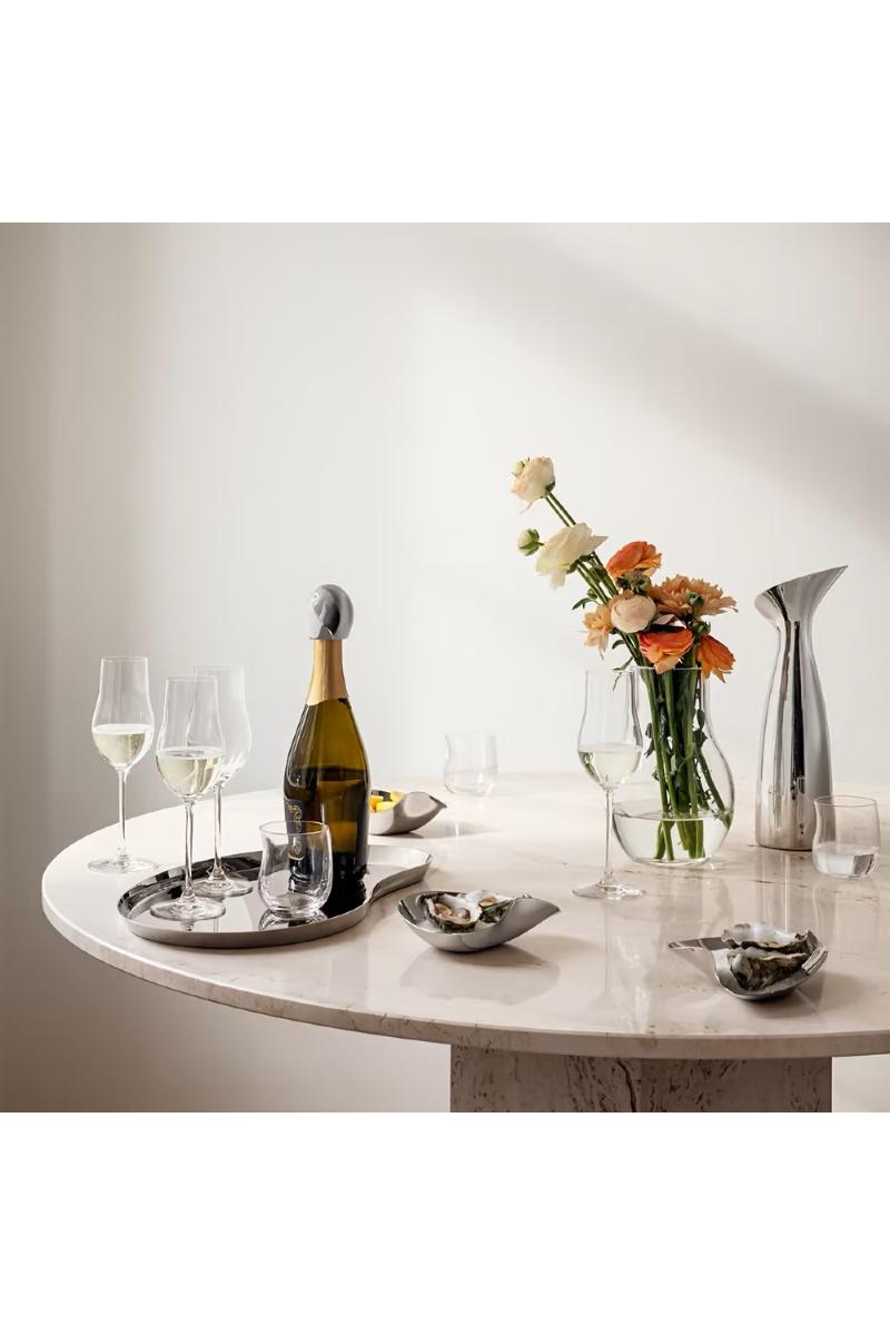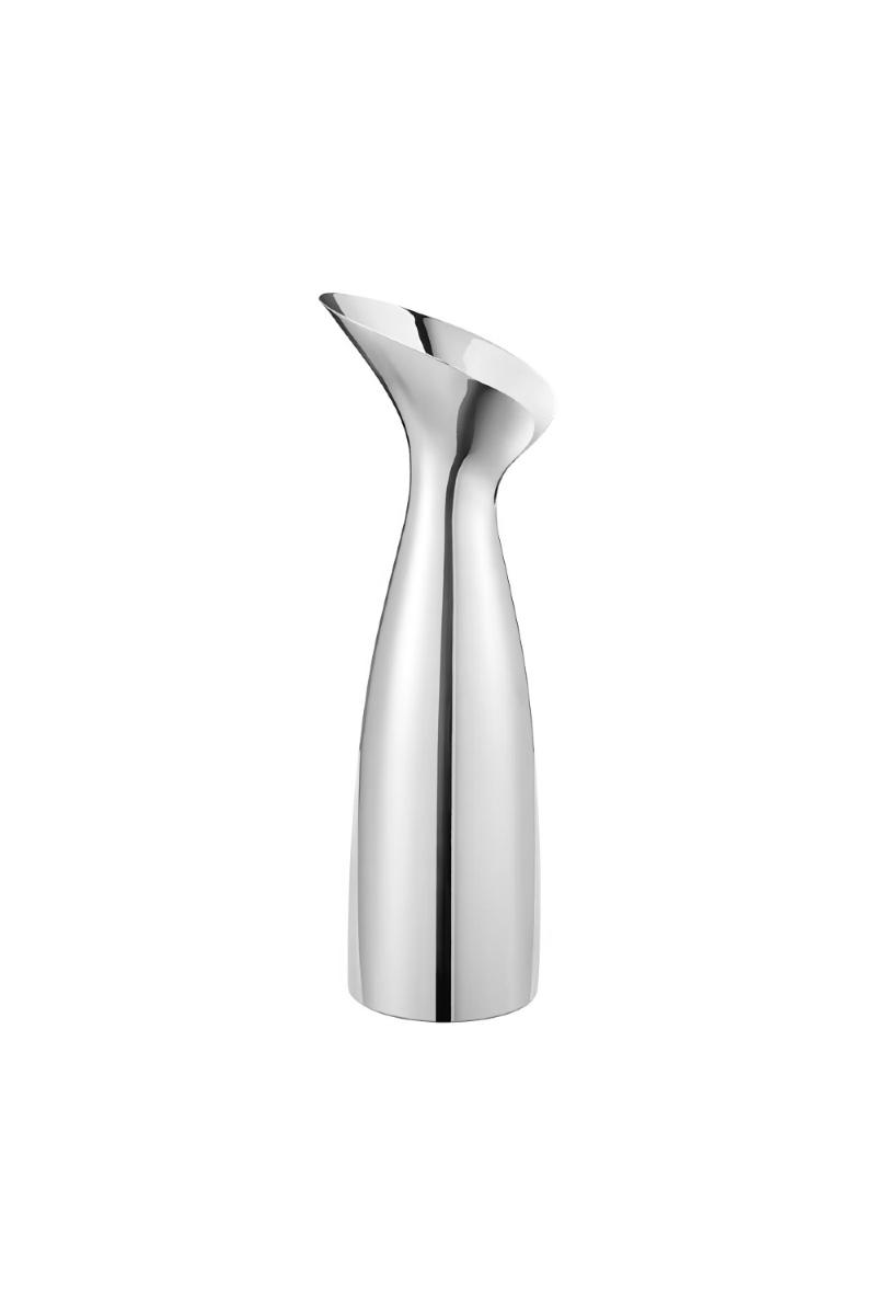 Indulgence-karaffelen er designet av Helle Damkjær og har en elegant og buet form. Den er laget i blankt rustfritt stål, og materialet holder drikken kald lenge. Denne stålkaraffelen kan ikke vaskes i oppvaskmaskin.