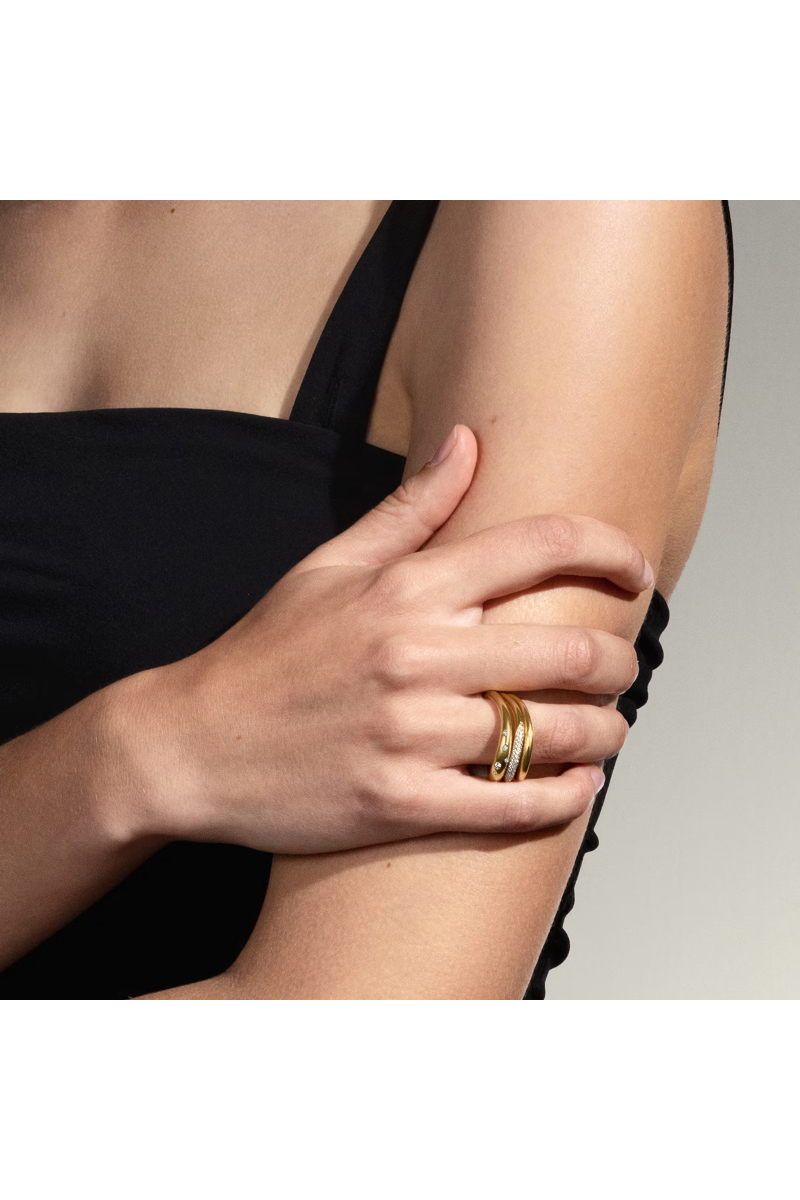 Denne elegante ringen er laget av 18 karat gull og er prydet med briljantslipte diamanter som er nøye pavébesatt for hånd. Ringen har den karakteristiske ovale formen som er inspirasjonen bak Jacqueline Rabuns Offspring-kolleksjon. Smykkets organiske form gjør det unikt i seg selv, og det er en flott tillegg når du ønsker å kombinere gullringer med andre metaller.