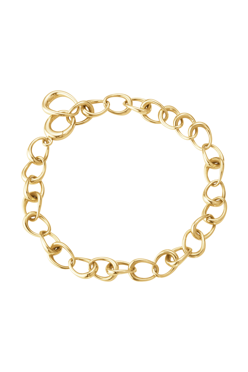 Den gjenkjennelige ovale formen som kjennetegner Jacqueline Rabuns Offspring-kolleksjon, er her skalert ned og sammensatt for å danne dette lette kjedearmbåndet. Laget av 18 kt. gull, inkluderer armbåndet et ekstra hengende ovalt ledd som fungerer som et lite anheng.