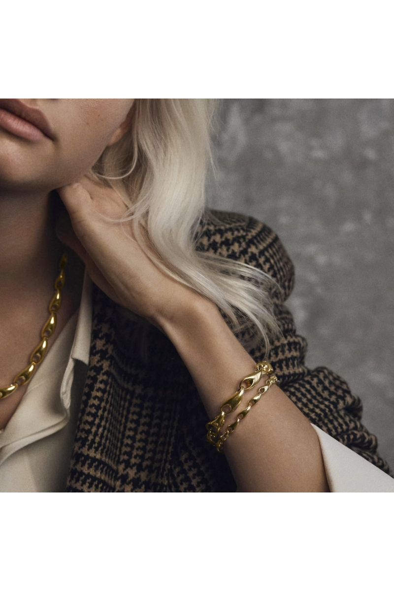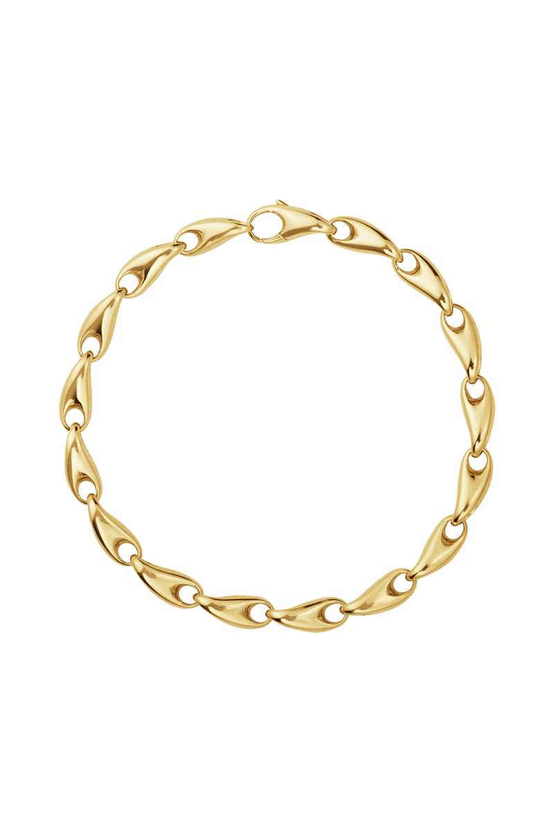 En rekke naturlig formende ledd i 18 karat gull slår seg sammen og skaper denne moderne tolkningen av et klassisk kjedearmbånd. Jacqueline Rabun har designet dette armbåndet, og det er laget av 18 karat gull, som kombinerer en dristig stil med Georg Jensens skulpturelle design. Armbåndet lukkes elegant med en integrert lås.