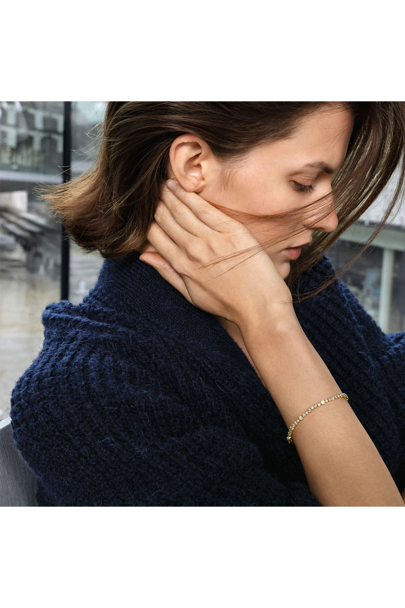 Dette solide tennisarmbåndet i 18 kt. gull er håndverk på sitt beste. Armbåndet er et eksempel på Georg Jensens forpliktelse til innovativt design og har en karakteristisk diamantinnfatning som gir maksimal glans. Diamantene kommer i ulike størrelser og er omhyggelig besatt for hånd på en naturlig og ikke-lineær måte som gjenspeiler en av Georg Jensens største inspirasjonskilder, nemlig naturen. Armbåndet er laget for å bli verdsatt og gitt videre i generasjoner, og vil aldri gå ubemerket hen.