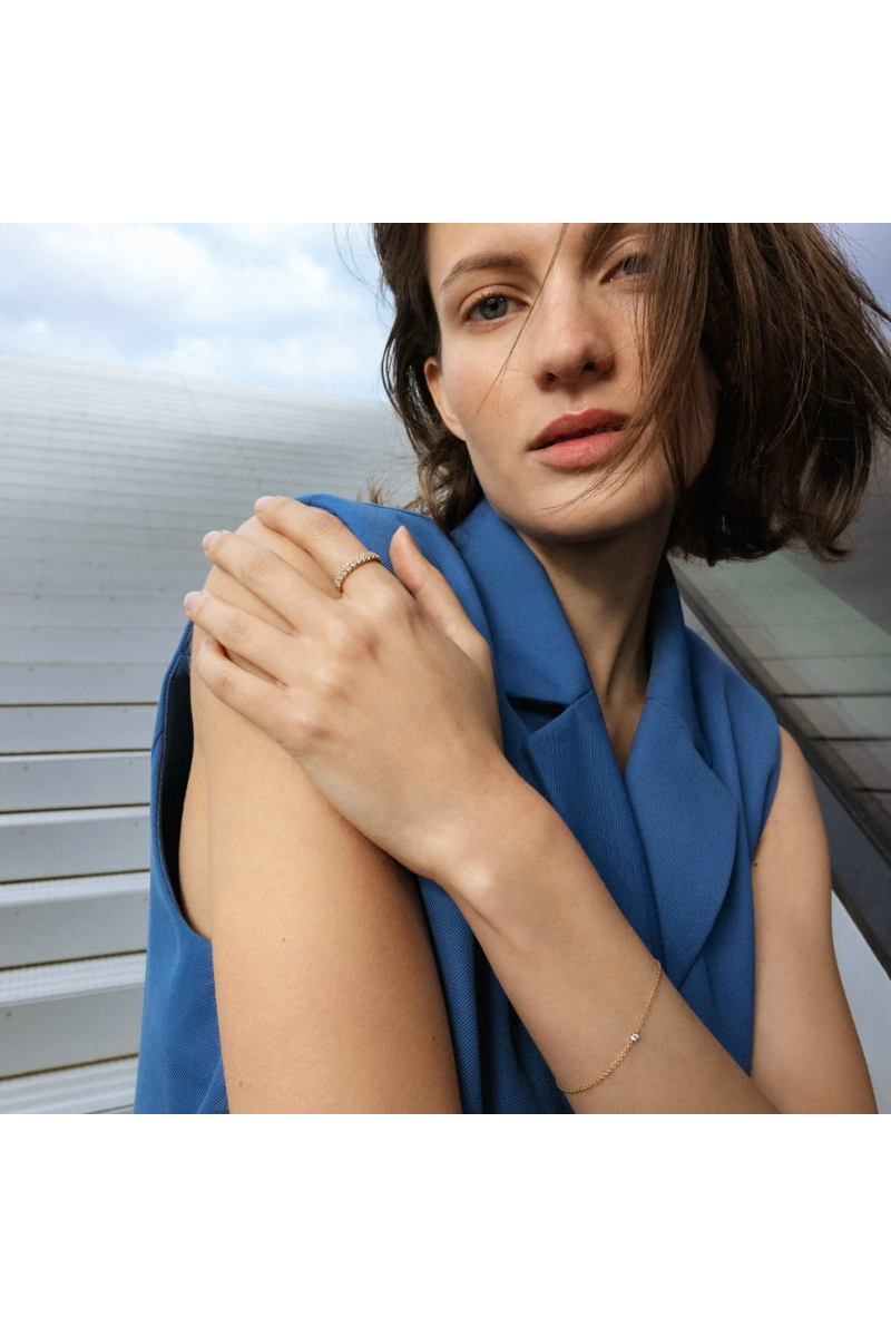 Denne vakre ringen i solid 18 kt. gull er prydet med briljantslipte diamanter som elegant omslutter fingeren. Diamantene gir liv til ringen, og den er besatt i Georg Jensens karakteristiske stil for å oppnå maksimal glans.