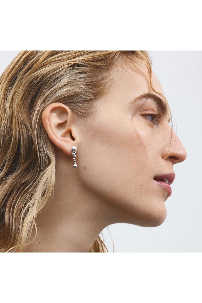 Disse vakre øredobbene består av små klynger med sølvkuler som henger elegant fra øret. De vakre sølvkulene er en hyllest til Georg Jensens designarv, og formen er inspirert av de klassiske druemotivene fra hans ikoniske sølvdesign.
