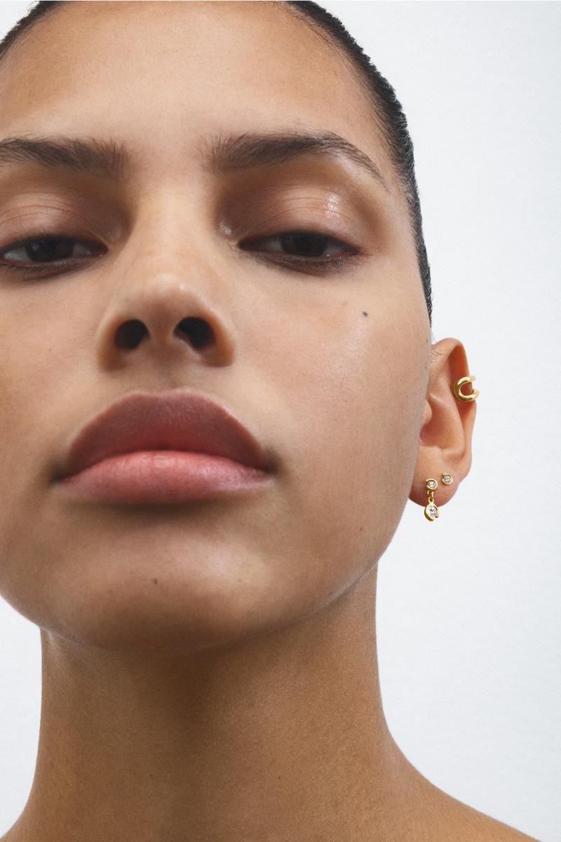 Fire briljantslipte diamanter på til sammen 0,20 karat pryder disse Mercy-ørerdobbene i 18 karat resirkulert gull. Øredobbene har den organiske formen som kjennetegner kolleksjonen og diamantene er knyttet sammen via en liten kjede som skaper et vakkert uttrykk for bevegelse.
