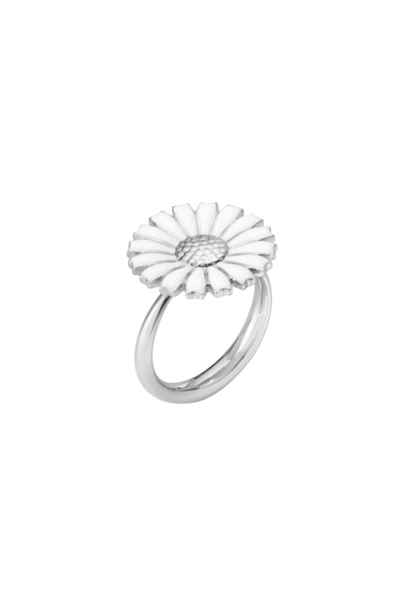 Denne blomstrende Daisy-ringen er en hyllest til en av Georg Jensens mest ikoniske smykkekolleksjoner. Ringen er laget av sterlingsølv og hvit emalje og har en oppdatert versjon av det klassiske Daisy-motivet. Et allsidig smykke som er både innovativt og samtidig tro mot husets designarv.