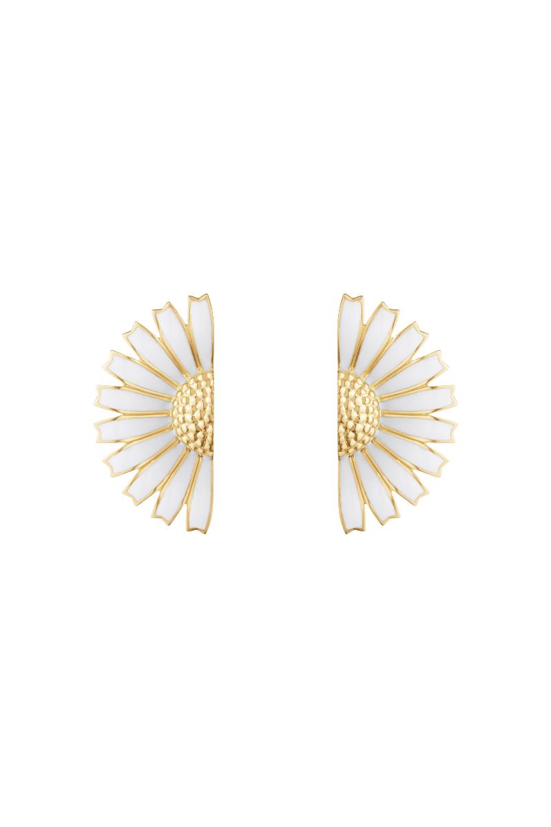 Denne statement-øreringen presenterer Georg Jensens ikoniske Daisy i en helt ny årgang. Laget av Georg Jensen Design Studio, er det iøynefallende stykket i sterling sølv og 18 karat gult gull utsmykket med en storstilt halv tusenfryd som fremhever motivets mange imponerende og vakre detaljer. Øredobben er designet med en ny lukking som kombinerer den klassiske ploppen med en praktisk klips.