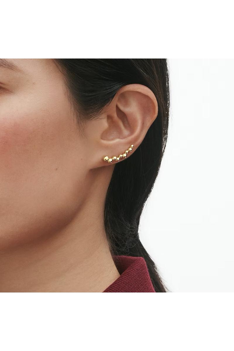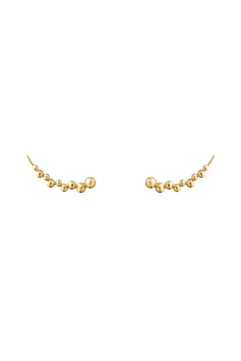 Disse fine gulløreringene gir et snev av eleganse, enten de brukes til en avslappet hverdagsstil eller til en nedtonet, men eksklusiv kveldslook. Designen er bygd opp av en rekke elegante gullkuler, som er en nytolkning av Georg Jensens opprinnelige art nouveau-stil. Øreringene er en moderne design som henter inspirasjon fra fruktmotivene i Georg Jensens tidligste sølvhåndverk.