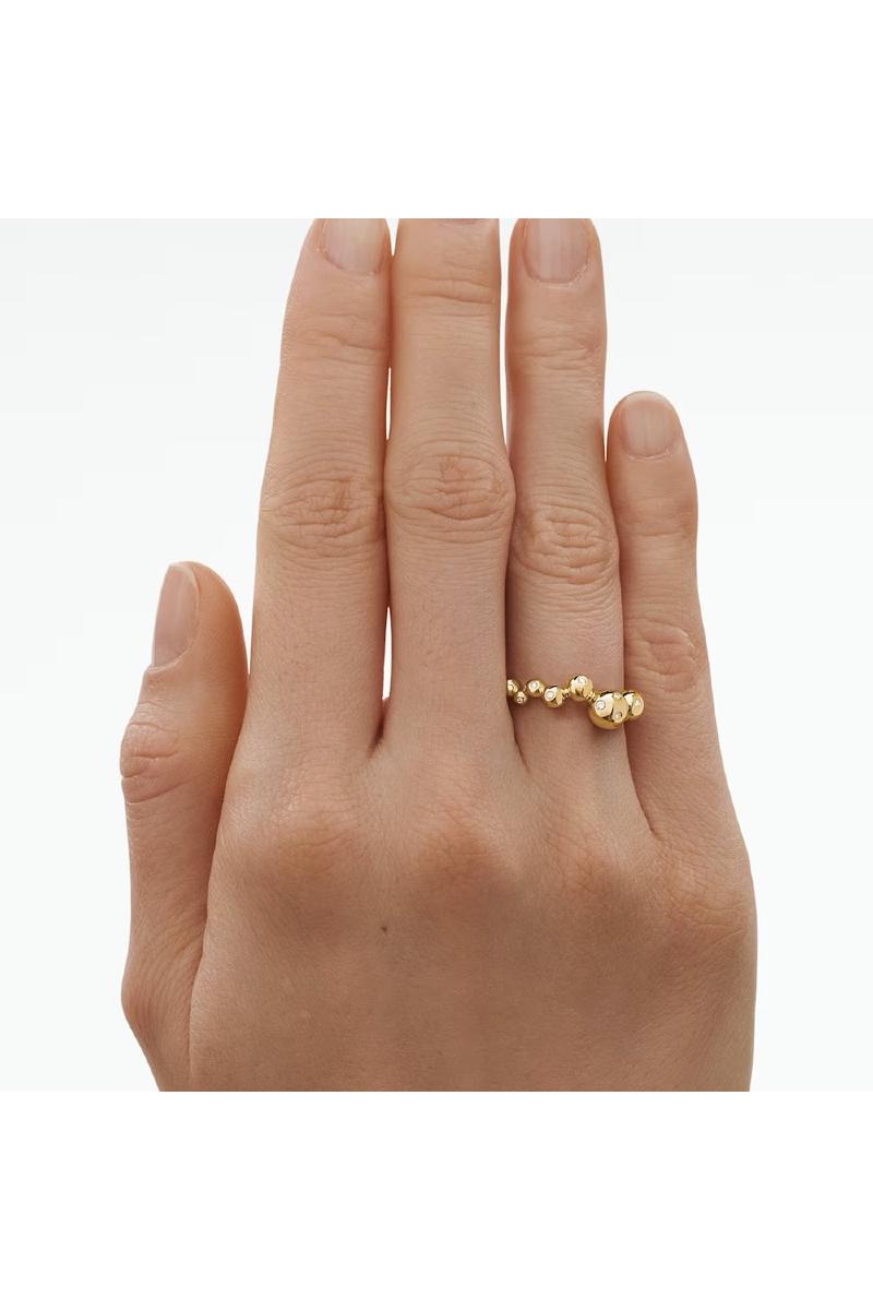 Denne Moonlight Grapes-ringen har elegante kuler i 18 karat gult gull med diamanter som løfter enhver stil. Designen er en tolkning av Georg Jensens opprinnelige art nouveau-stil, og smykket er en moderne design som henter inspirasjon fra fruktmotivene i hans tidligste sølvhåndverk.