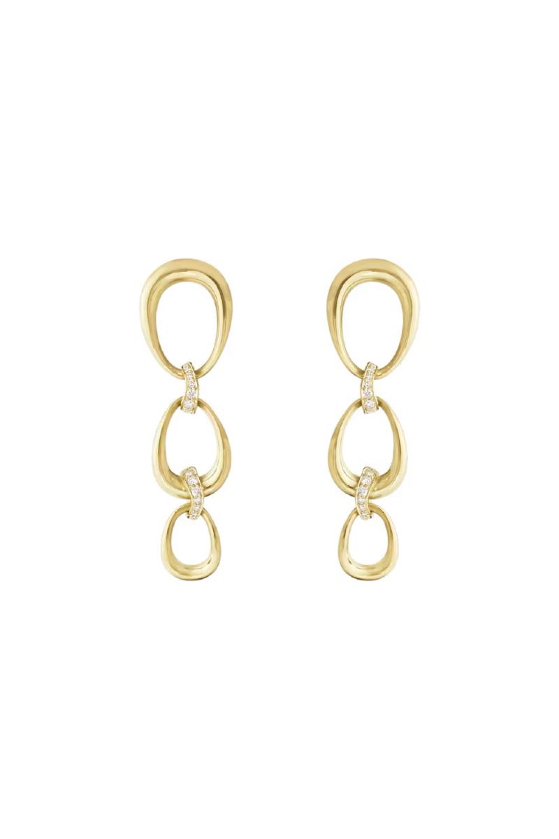 Hver ørering i dette fine settet består av tre elegante ringer som er knyttet sammen av en diskré rad med diamanter. Øreringene er designet av Jacqueline Rabun, som legger mye symbolikk i smykkene sine. For Rabun symboliserer de sammenflettede ringene i Offspring-kolleksjonen de følelsesmessige båndene mellom mennesker.