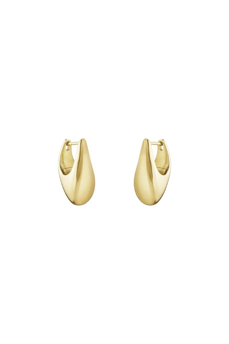 Disse elegante øreringer i 18 karat gull har Reflect-kolleksjonens unike designspråk. En smykkeserie som er designet av Jacqueline Rabun for Georg Jensen. Den markante, organiske formen kombinerer skulpturell eleganse med et moderne og dristig uttrykk. Øreringen er designet for å brukes på mange måter og er et statementsmykke, enten den bæres alene eller sammen med andre design fra Reflect-kolleksjonen.