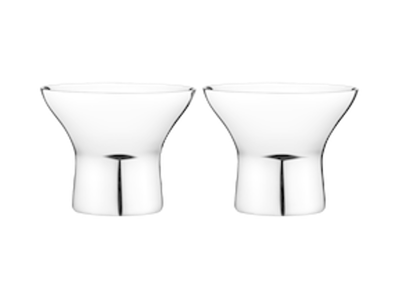 Det settet med to eggeglass er ekspertmessig håndlaget av speilpolert rustfritt stål. Produktet er egnet for mat.