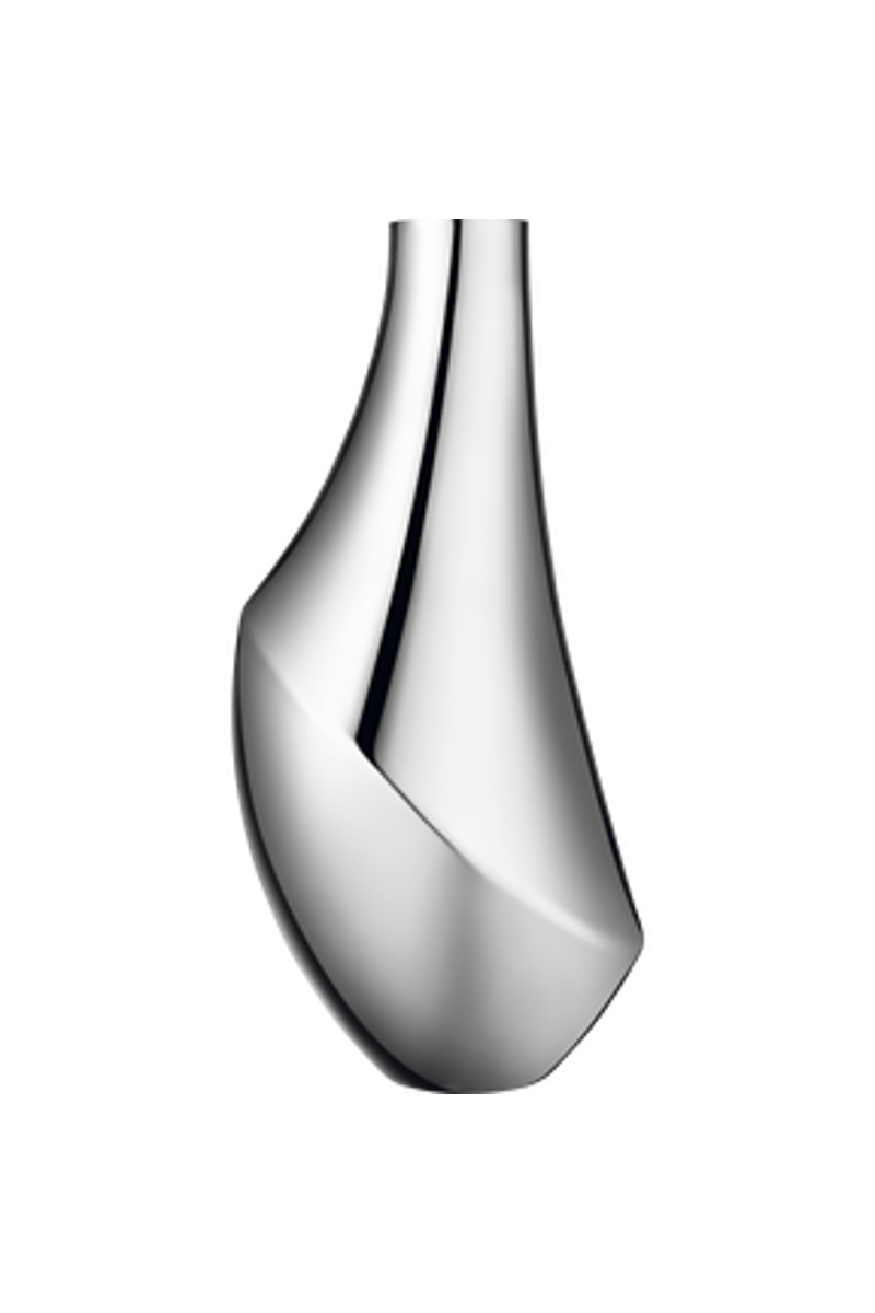 FLORA-vase med vakre konturer i polert rustfritt stål.
