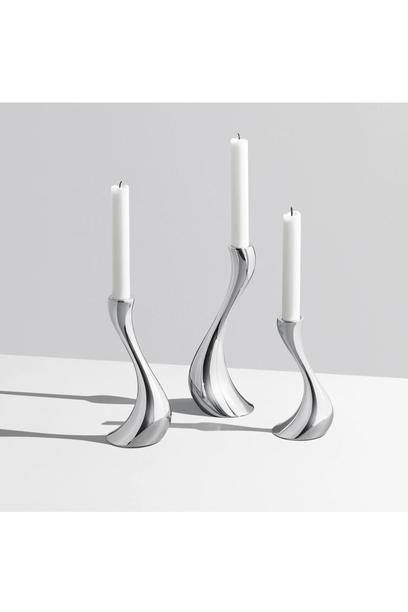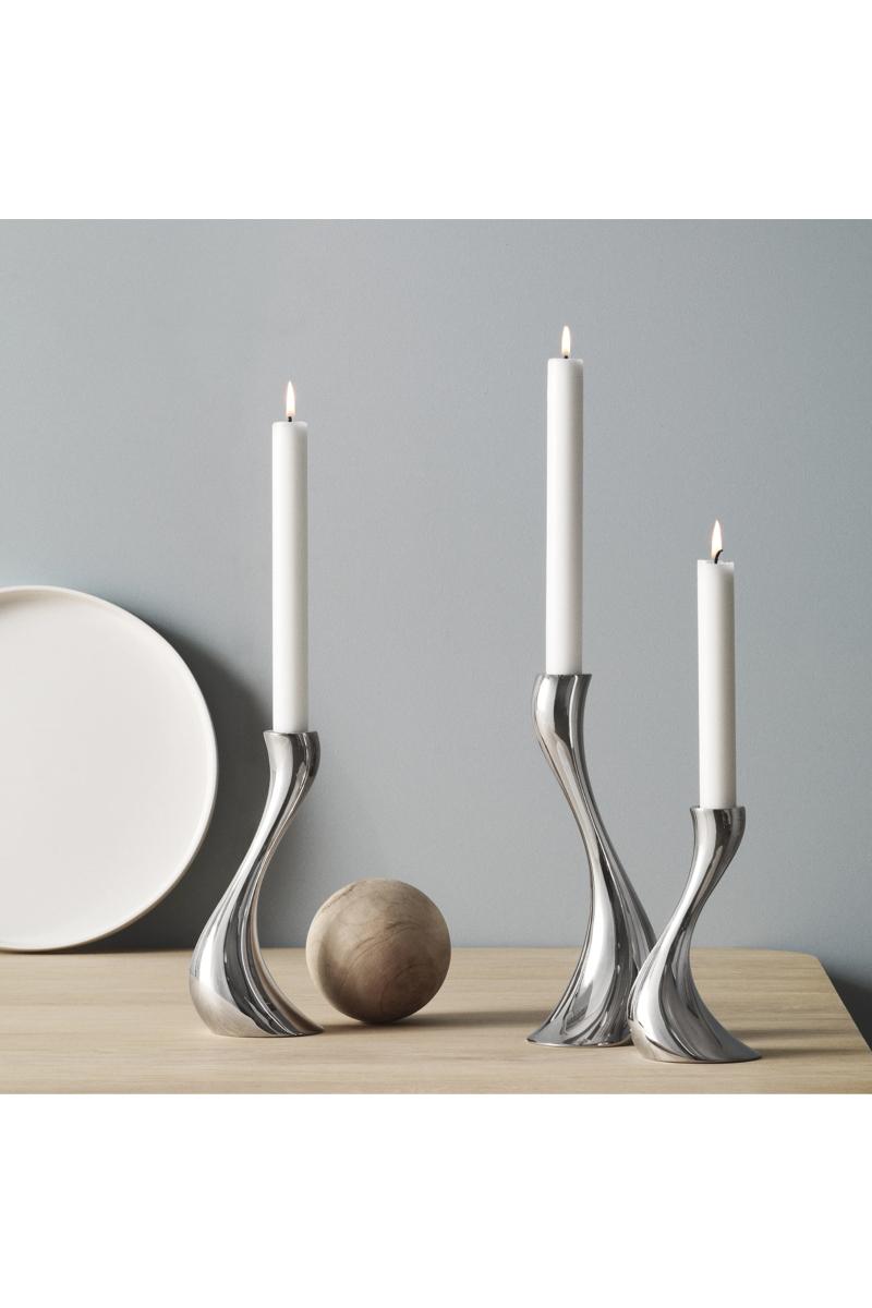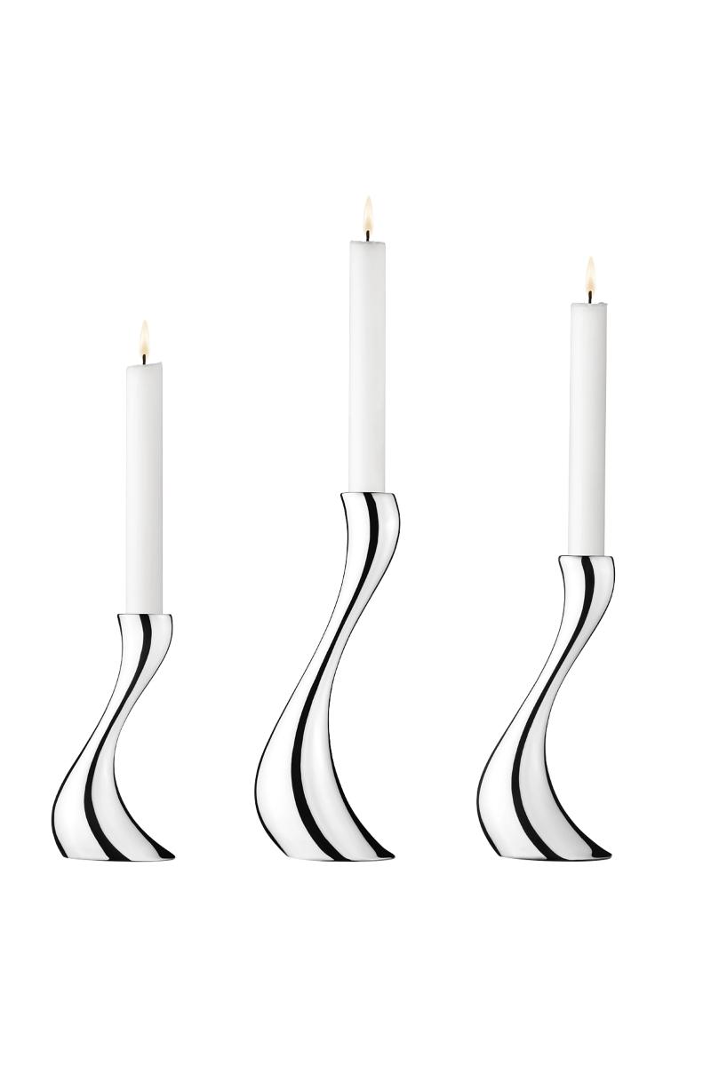 COBRA ligner en antikk lysestake med sin betydelige vekt og høyde, men de frodige, tyngdekraft-trossende kurvene i skinnende rustfritt stål ligner ikke på forgjengerne. COBRA er glatt og fengslende. Akkurat som den mystiske slangen som inspirerte designeren, er det vanskelig å fjerne øynene fra COBRA-lysestakene – spesielt i et tre-polet arrangement.