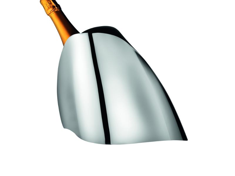 Champagnekjøleren er laget av polert rustfritt stål og pynter et middagsbord eller en skjenk på en vakker måte. Den ellipseformede åpningen har et organisk utseende, og hellingen holder kjøleren i en perfekt vinkel slik at den enkelt kan tas inn og ut. En spesiell champagnekjøler for enhver anledning.