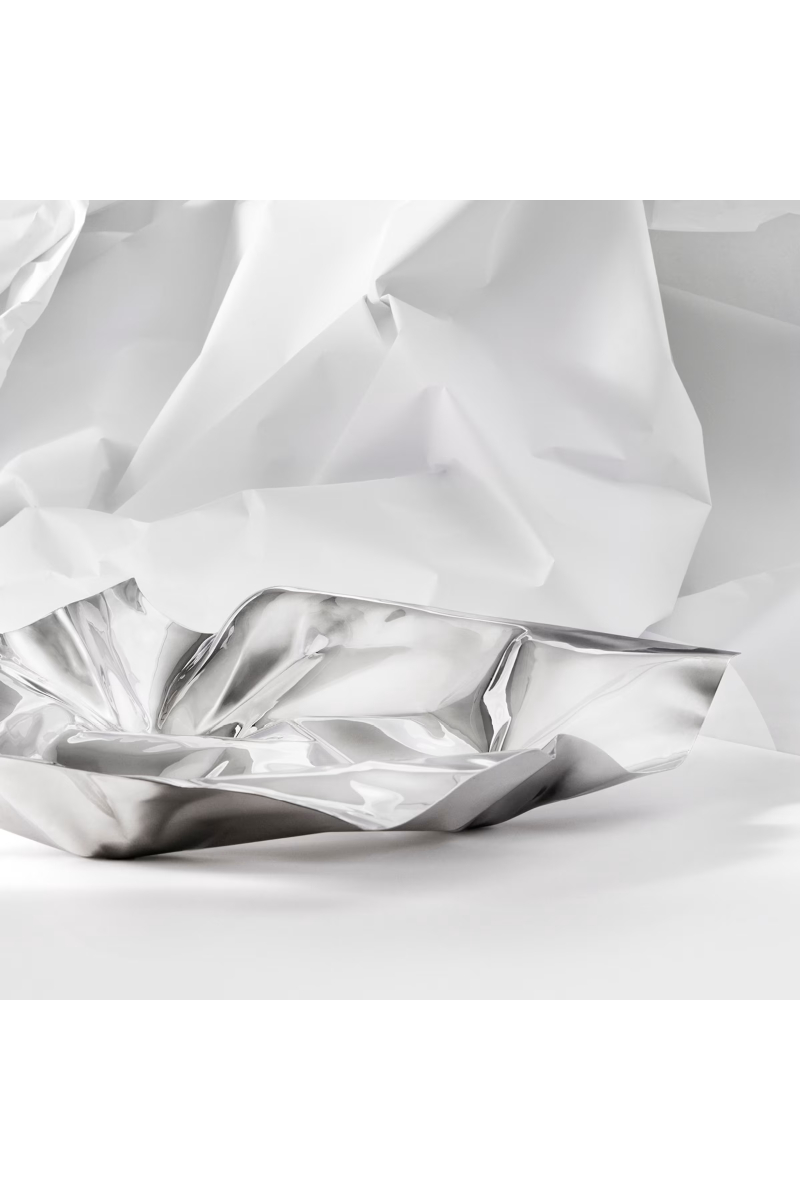 Panton-fatet er håndlaget med nøye presisjon i blankt rustfritt stål. Designet ligner Verner Pantons ikoniske fat, som han opprinnelig skapte i sterlingsølv for Georg Jensen.