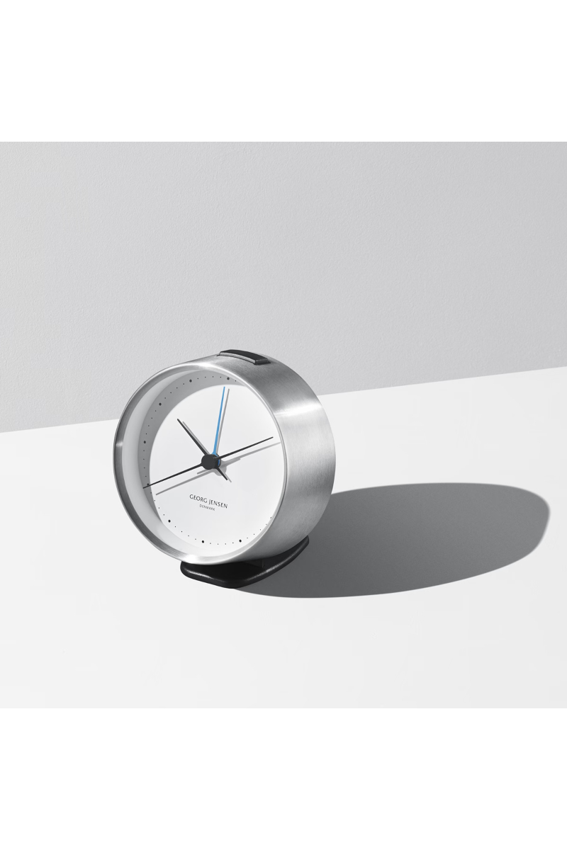 Fra luksusure til kronografer til vægure og vejrstationer – Henning Koppels sparsomme signaturstil har bidratt til å hjelpe oss med å holde styr på tiden og få det meste ut av den. Nå utvides kolleksjonen igjen med Henning Koppels ur med alarmfunksjon. Uret er enestående praktisk og vakkert, som alltid, og er den optimale partneren på jobb, på reise eller hjemme.